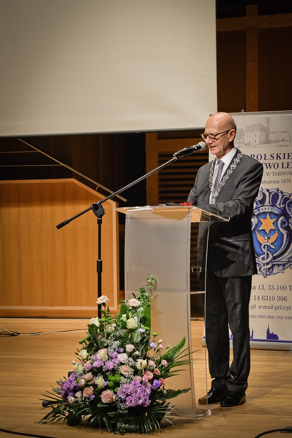 Każdy z nich wniósł swój wkład w rozwój towarzystwa, którego dziś jesteśmy spadkobiercami i naszym obowiązkiem jest przekazywanie go kolejnym pokoleniom . Podkreślił też ważne wydarzenia i dokonania oddziału PTL w ostatnim pięcioleciu. Na szczególną uwagę zasługuje coraz większe zaangażowanie młodych lekarzy rezydentów, prezentujących kazuistyczne prace oraz dalsze zacieśnianie współpracy z OIL w Tarnowie m.in. w organizowaniu corocznych konferencji szkoleniowo-naukowych „Tarnowskie Dialogi Medyczne”. Doniosłym wydarzeniem, z inicjatywy dr. Antoniego Sydora, było także ufundowanie przez środowisko lekarskie, sztandaru towarzystwa. Na szczególną uwagę, z inicjatywy prezesa dr. Olechowskiego zasługuje otwarcie nowej siedziby PTL w Tarnowie, w odrestaurowanym budynku byłego szpitala żydowskiego przy ul. Szpitalnej 13, do czego szczególnie przyczynił się dr Marcin Kuta, dyrektor Specjalistycznego Szpitala im. E. Szczeklika. Miłym akcentem uroczystości były wystąpienia obecnych na tym wydarzeniu oficjalnych gości, którzy składali gratulacje i życzenia.