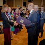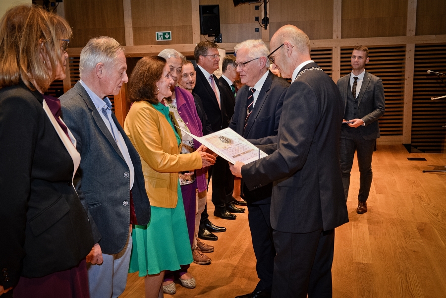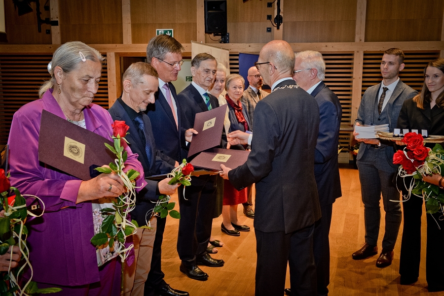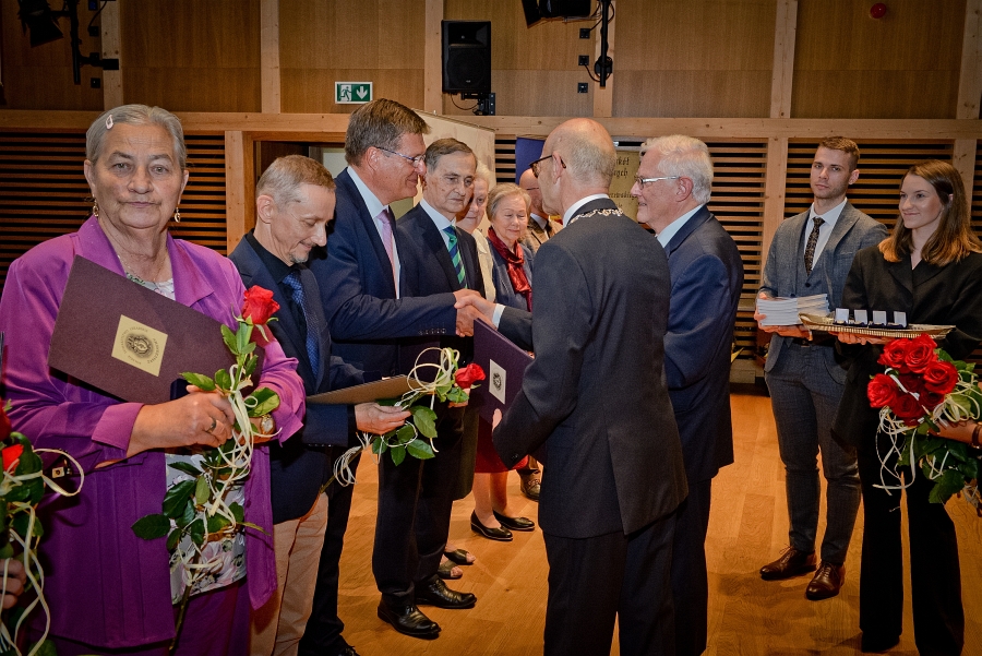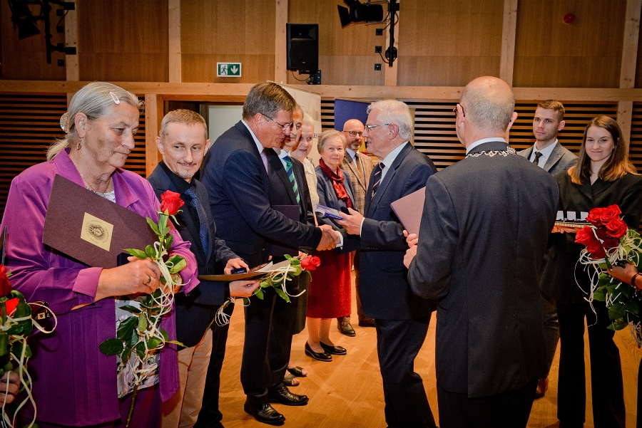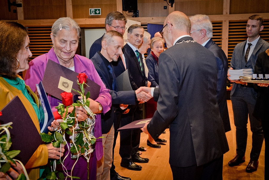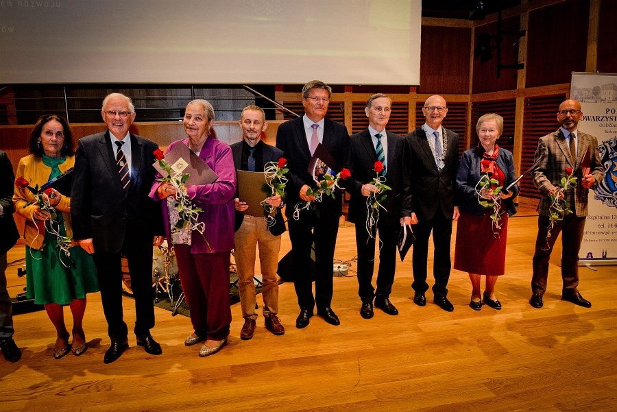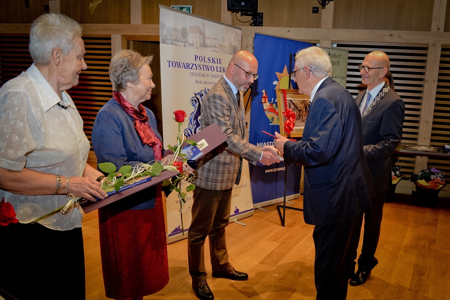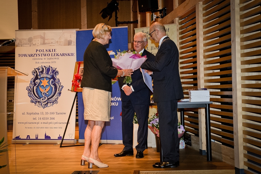 Po wystąpieniach okolicznościowych prezes honorowy dr Antoni Sydor, w imieniu Zarządu Głównego wraz z prezesem oddziału PTL w Tarnowie dr Wiesławem Olechowskim, wręczyli odznaczenia nadane za zasługi dla Towarzystwa Lekarskiego. Odznaczenie „Bene Meritus” otrzymała dr Teresa Natkaniec, a odznaczenia „Zasłużonemu – Polskie Towarzystwo Lekarskie” – dr Witold Boronowicz, dr Stanisława Dybowska, dr Edward Laska, dr Jacek Karaś, dr Marcin Kuta, Kazimiera Leszkiewicz – kierownik biura PTL, dr Natalia Trzos, dr Małgorzata Żurowska-Gęba. Medalem im. Józefa Starkla odznaczono Wojciecha Sypka- historyka, za szczególny wkład w opracowanie rocznicowych monografii dziejów Towarzystwa Lekarskiego w Tarnowie. Nagrodzone tytułem „ Zasłużonemu PTL” zostały także dr Grażyna Kalita -Słowik oraz dr Gertruda Wiklowska- Banasik, nieobecne na jubileuszu z powodów losowych.