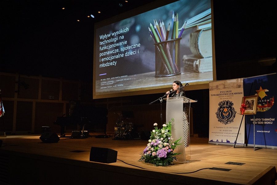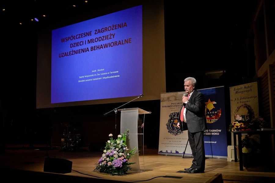 W sesji szkoleniowo-naukowej byliśmy świadkami bardzo interesujących, poruszających jakże aktualne problemy, wpływu wysokich technologii na zdrowie młodych ludzi. Wykład profesor Marty Korendo – neurologopedy, kierownika Katedry Neurologopedii i Zaburzeń Rozwoju UKEN w Krakowie, dobitnie uzmysłowił nam istnienie bardzo istotnych i silnych związków oddziałujących negatywnie na rozwój poznawczy, emocjonalny i społeczny dzieci i młodzieży, co w konsekwencji zwiększa podatność na uzależnienia behawioralne. Tu z kolei, kluczową rolę odgrywają mechanizmy nagrody, deficyty regulacji emocji i uwagi oraz presji społecznej online, o których wpływie i konsekwencjach mówił z kolei mgr Jacek Skrobot – kierownik Ośrodka Leczenia Uzależnień i Współuzależnienia w Tarnowie.